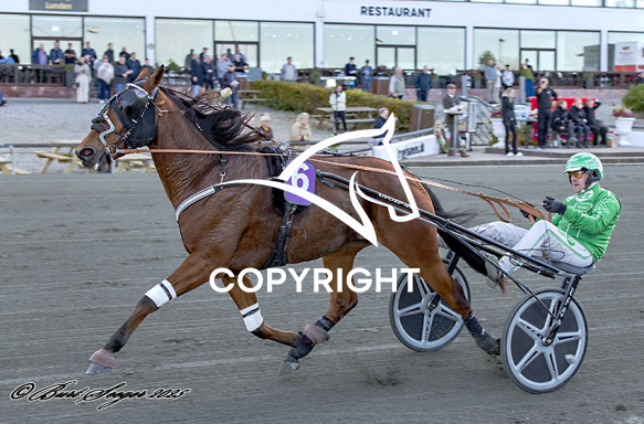 - Billede Beskrivelse: NEW YORK LOBELL med Rene Kjær 8. løbs vinder,, på Charlottenlund d. 2025-10-12. Photo: Burt Seeger.