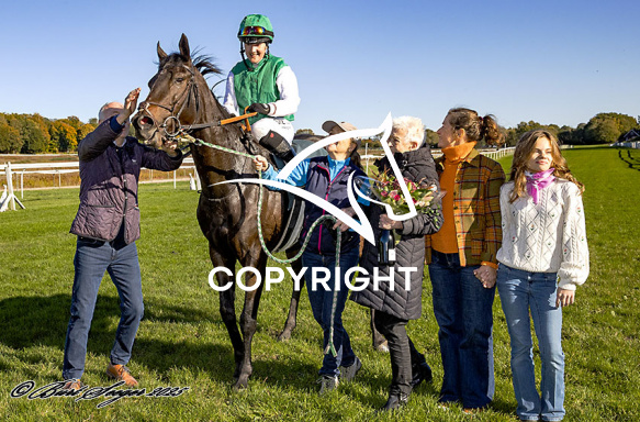 - Billede Beskrivelse: ADELINA BLUE med Josefin Landgren 3. løbs vinder på Klampenborg d. 2025-10-18. Photo: Burt Seeger.