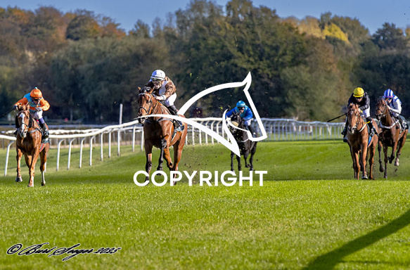 - Billede Beskrivelse: DARLINGTON med Oliver Wilson 1. løbs vinder på Klampenborg d. 2025-10-18. Photo: Burt Seeger.