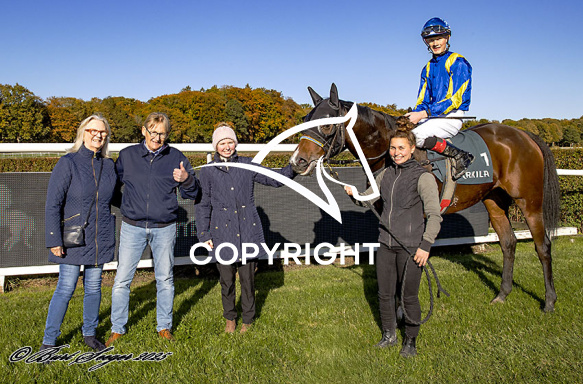 - Billede Beskrivelse: PERSIAN MAGIC med Jacob Kvisla 5. løbs vinder på Klampenborg d. 2025-10-18. Photo: Burt Seeger.