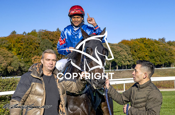 - Billede Beskrivelse: WORRES WIGGO med Diego Pedroza 4. løbs vinder på Klampenborg d. 2025-10-18. Photo: Burt Seeger.