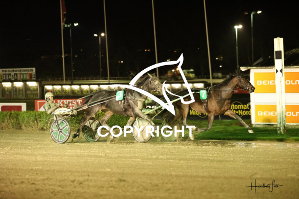 - Beskrivelse: KNOCK ON WOOD med Flemming Jensen vinder dagens 4 løb. Amerikanerløb m. justering af startspor. Spar Nord Arena-Aalborg Væddeløbsbane d. 20/10-2025. Fotograf: Hesselborg Foto