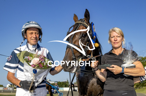 - Billede Beskrivelse: KALLES KRISBE NOTZ med Jörgen Sjunnesson 5. løbs vinder af DerbyPrøve 2025, på Charlottenlund d. 2025-08-13. Photo: Burt Seeger.