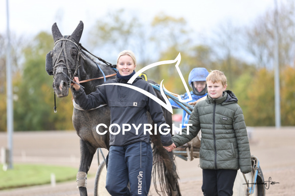 - Beskrivelse: ENCRU CLOC med Mads Vesterlund vinder dagens 1 løb. Amatør-/Jockeyformløb 1.18.0 Spar Nord Arena-Aalborg Væddeløbsbane d. 26/10-2025. Fotograf: Hesselborg Foto