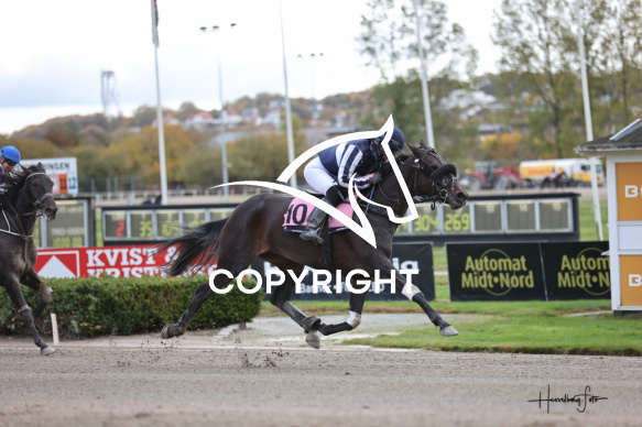 - Beskrivelse: IMPALA med Sofie Stamhus vinder dagens 2 løb. Monteformløb Spar Nord Arena-Aalborg Væddeløbsbane d. 26/10-2025. Fotograf: Hesselborg Foto