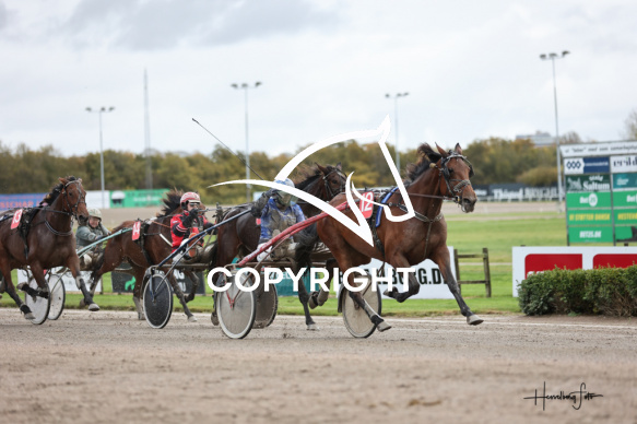 - Beskrivelse: CJELA NORDAL med Freja Klitgaard vinder dagens 3 løb. Formløb Amatør/Jockey Spar Nord Arena-Aalborg Væddeløbsbane d.26/10-2025. Fotograf: Hesselborg Foto