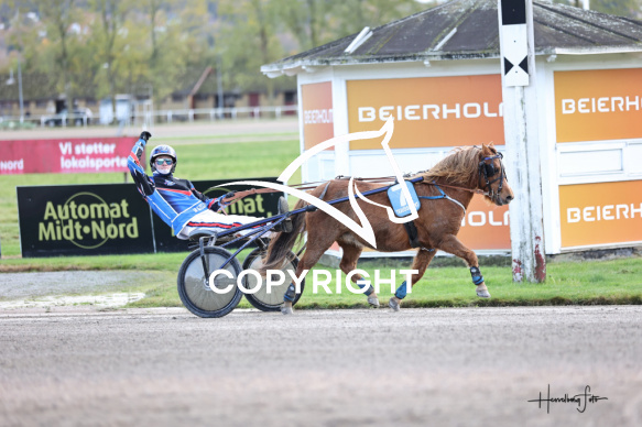 - Beskrivelse: Zmilla Vanilla med Jonas Urth Pedersen vinder dagens ponyløb. Aalborg Ponytravklub - Ikaros Spar Nord Arena-Aalborg Væddeløbsbane d. 26/10-2025. Fotograf: Hesselborg Foto