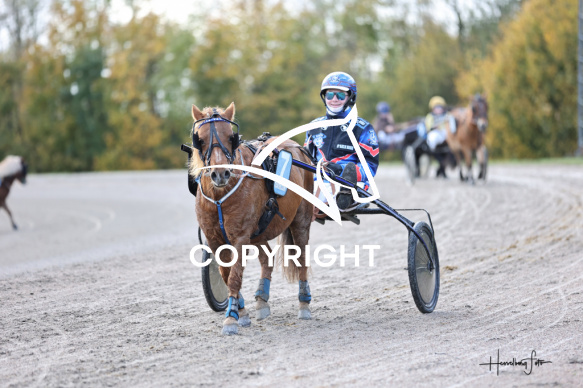 - Beskrivelse: Zmilla Vanilla med Jonas Urth Pedersen vinder dagens ponyløb. Aalborg Ponytravklub - Ikaros Spar Nord Arena-Aalborg Væddeløbsbane d. 26/10-2025. Fotograf: Hesselborg Foto