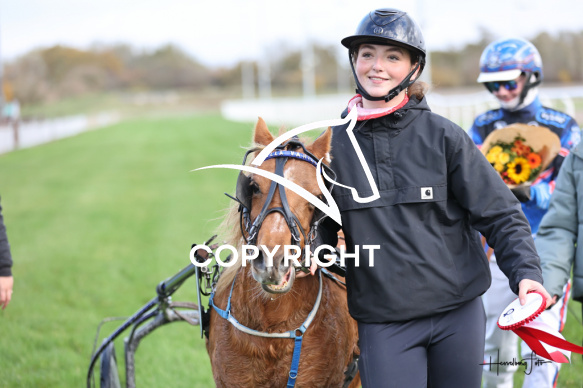 - Beskrivelse: Zmilla Vanilla med Jonas Urth Pedersen vinder dagens ponyløb. Aalborg Ponytravklub - Ikaros Spar Nord Arena-Aalborg Væddeløbsbane d. 26/10-2025. Fotograf: Hesselborg Foto