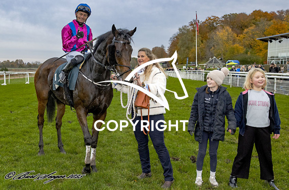 - Billede Beskrivelse: GARLIC med Per-Anders Gråberg 5. løbs vinder på Klampenborg d. 2025-11-01. Photo: Burt Seeger.