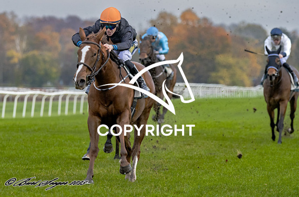 - Beskrivelse: VALENTINE med Nicolaj Stott 1. løbs vinder på Klampenborg d. 2025-11-01. Photo: Burt Seeger.