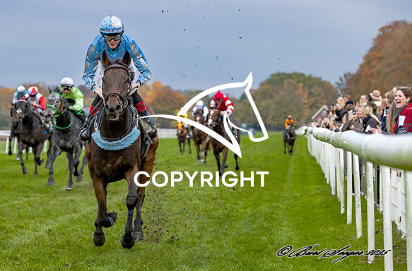 - Billede Beskrivelse: PHILIANGO med Jacob Kvisla 7. løbs vinder på Klampenborg d. 2025-11-01. Photo: Burt Seeger.