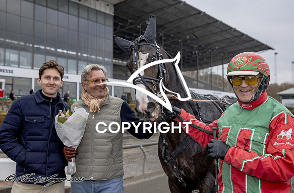 - Billede Beskrivelse: LUCKY MOM med Steen Juul 1. løbs vinder på Klampenborg d. 2025-11-08. Photo: Burt Seeger.