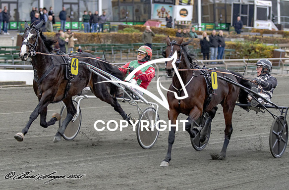 - Billede Beskrivelse: LUCKY MOM med Steen Juul 1. løbs vinder på Klampenborg d. 2025-11-08. Photo: Burt Seeger.