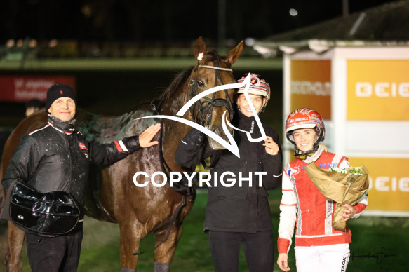 - Beskrivelse: TOUR EIFFEL med Michelle Mønster vinder dagens 7 løb. Monteserien - Finale Spar Nord Arena-Aalborg Væddeløbsbane d. 12/11-2025. Fotograf: Hesselborg Foto