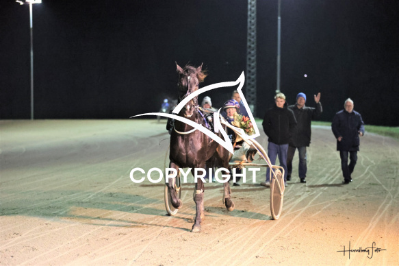 - Beskrivelse: JACKPOT MAGIC med Anders Pedersen vinder dagens 2 løb. Amerikanerløb m. justering af startspor. Spar Nord Arena-Aalborg Væddeløbsbane d. 24/11-2025. Fotograf: Hesselborg Foto