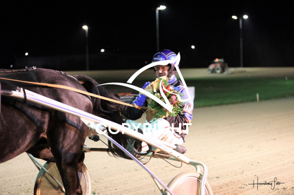 - Beskrivelse: JACKPOT MAGIC med Anders Pedersen vinder dagens 2 løb. Amerikanerløb m. justering af startspor. Spar Nord Arena-Aalborg Væddeløbsbane d. 24/11-2025. Fotograf: Hesselborg Foto