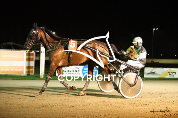 - Beskrivelse: STARCATCHER med Kasper Foget vinder dagens 3 løb. Stayerløb Spar Nord Arena-Aalborg Væddeløbsbane d. 24/11-2025. Fotograf: Hesselborg Foto