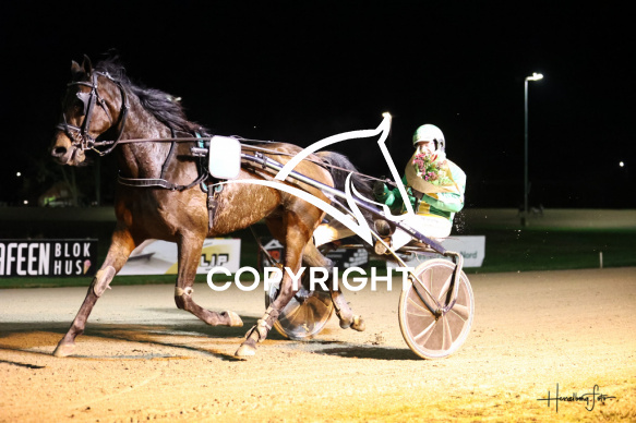 - Beskrivelse: INSPIRED LIGHTS med Henrik Lønborg vinder dagens 4 løb. Amerikanerløb m. justering af startspor. Spar Nord Arena-Aalborg Væddeløbsbane d. 24/11-2025. Fotograf: Hesselborg Foto