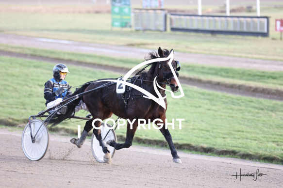 - Beskrivelse: HAMBO med Karina Madsen vinder dagens 5 løb. 1.18-handicap Spar Nord Arena-Aalborg Væddeløbsbane d. 29/11-2025. Fotograf: Hesselborg Foto