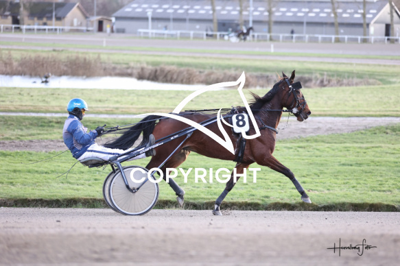 - Beskrivelse: HAMBO med Karina Madsen vinder dagens 5 løb. 1.18-handicap Spar Nord Arena-Aalborg Væddeløbsbane d. 29/11-2025. Fotograf: Hesselborg Foto