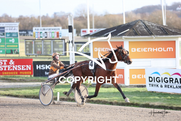 - Beskrivelse: HAMBO med Karina Madsen vinder dagens 5 løb. 1.18-handicap Spar Nord Arena-Aalborg Væddeløbsbane d. 29/11-2025. Fotograf: Hesselborg Foto