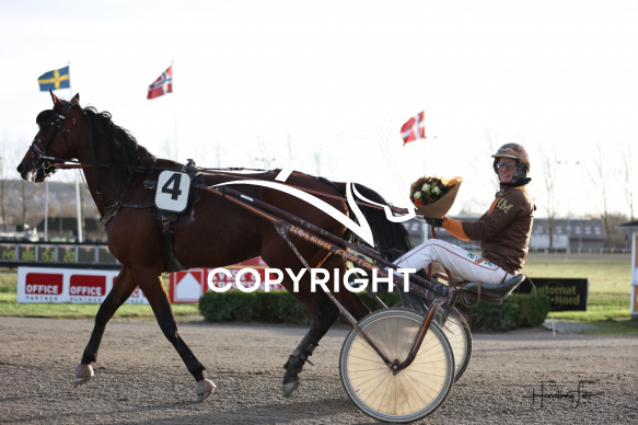 - Beskrivelse: HAMBO med Karina Madsen vinder dagens 5 løb. 1.18-handicap Spar Nord Arena-Aalborg Væddeløbsbane d. 29/11-2025. Fotograf: Hesselborg Foto