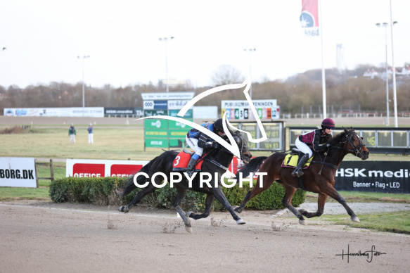 - Beskrivelse: HYRDEHØJ HURRICANE med Pernille Munch Lassen vinder dagens 8 løb. SU-Monteløb - Formløb Spar Nord Arena-Aalborg Væddeløbsbane d. 29/11-2025. Fotograf: Hesselborg Foto