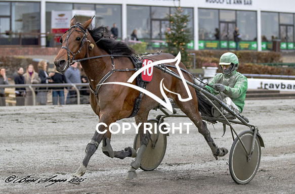 - Billede Beskrivelse: LOADED OLLE med Rene Kjær 3. løbs vinder,, på Charlottenlund d. 2025-11-30. Photo: Burt Seeger.