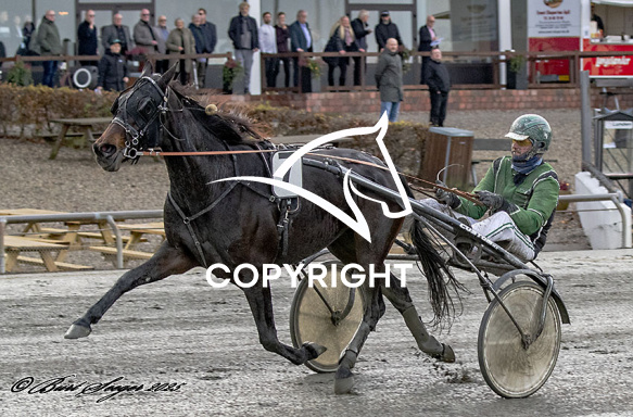 - Billede Beskrivelse: KIMIBI KINI med Mathias Jensen 5. løbs vinder,, på Charlottenlund d. 2025-11-30. Photo: Burt Seeger.