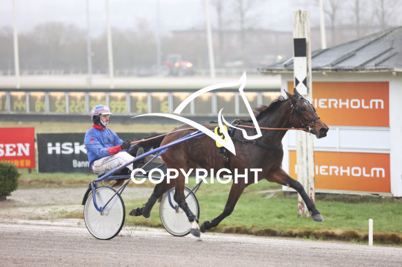 - Beskrivelse: MAGGI WEE med Martin Nørlem vinder dagens 1 løb. 2-åringernes Efterårssserie - "Made in Denmark". Spar Nord Arena-Aalborg Væddeløbsbane d. 7/12-2025. Fotograf: Hesselborg Foto