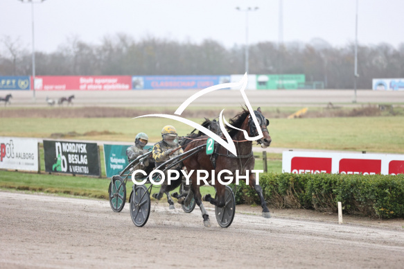 - Beskrivelse: PRECIOUS BOY A J med Birger Jørgensen vinder dagens 4 løb. Spar Nord Arena-Aalborg Væddeløbsbane d. 7/12-2025. Fotograf: Hesselborg Foto