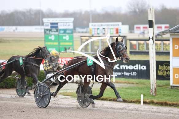 - Beskrivelse: PRECIOUS BOY A J med Birger Jørgensen vinder dagens 4 løb. Spar Nord Arena-Aalborg Væddeløbsbane d. 7/12-2025. Fotograf: Hesselborg Foto