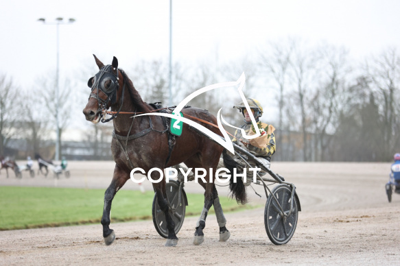 - Beskrivelse: PRECIOUS BOY A J med Birger Jørgensen vinder dagens 4 løb. Spar Nord Arena-Aalborg Væddeløbsbane d. 7/12-2025. Fotograf: Hesselborg Foto