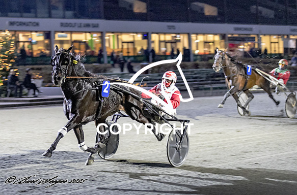 - Billede Beskrivelse: KOOGOO GAAGAA med Knud Mønster 2. løbs vinder,, på Charlottenlund d. 2025-12-12. Photo: Burt Seeger.