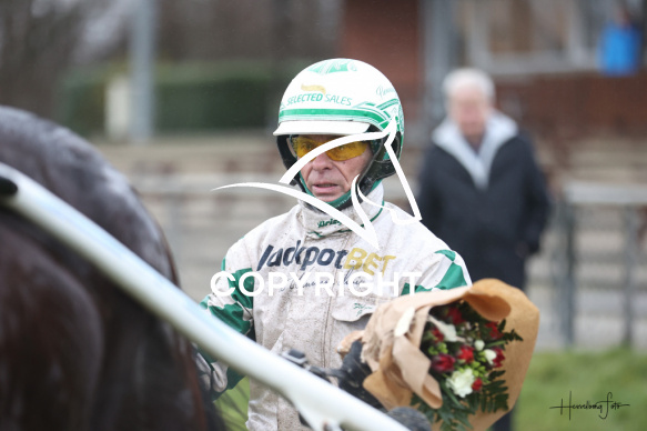 - Beskrivelse: AALBORG HESTEJERFORENINGS LØB blev vundet af SHOWMAN med Flemming Jensen. Amerikanerløb Spar Nord Arena-Aalborg Væddeløbsbane d.14/12-2025. Fotograf: Hesselborg Foto