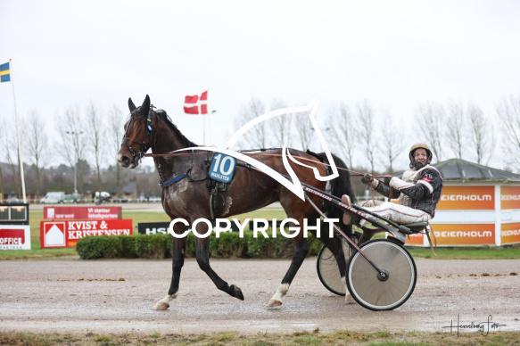 - Beskrivelse: Kiropraktikdyrlægen v/ Camilla Rasmussen løbet vinder LOVE ME TENDER DAY med Kaj Westergaard og er dagens 2 løb. Klasse II - 3-4 års Løb Spar Nord Arena-Aalborg Væddeløbsbane d. 14/12-2025. Fotograf: Hesselborg Foto