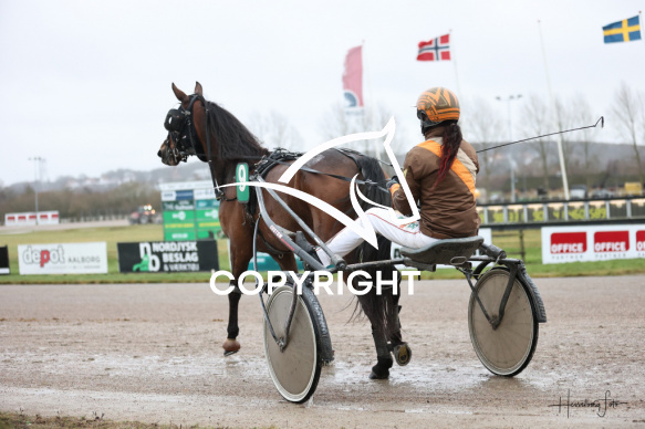 - Beskrivelse: Stald Saltum Løbet bliv vundet af IHOP med Karina Madsen og er dagens 4 løb. Amatørløb - Amerikanerløb Spar Nord Arena-Aalborg Væddeløbsbane d. 14/12-2025. Fotograf: Hesselborg Foto