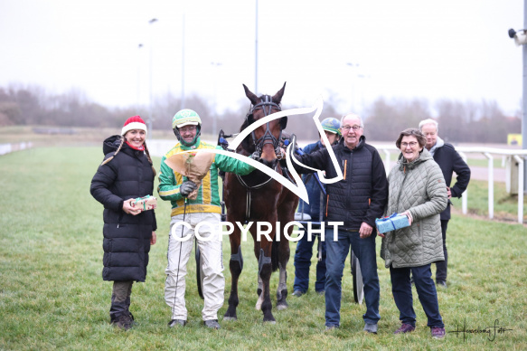 - Beskrivelse: Aalborg Væddeløbsbane Løbet vindes af HACIENDA med Henrik Lønborg. 1.17.5-handicap Spar Nord Arena-Aalborg Væddeløbsbane d. 14/12-2025. Fotograf: Hesselborg Foto