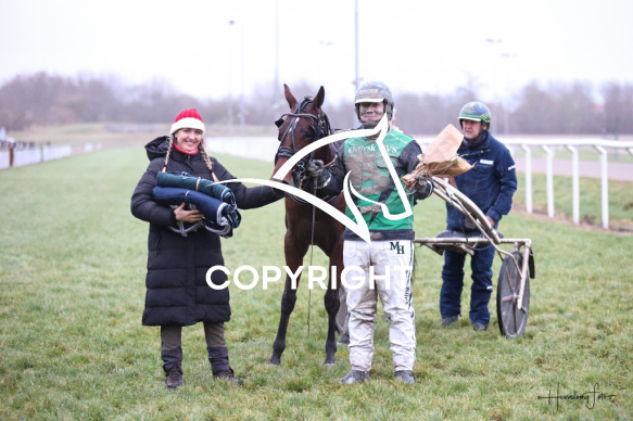 - Beskrivelse: KM Horses v Karina Madsen Løb vindes af KLEOPATRA S F med Mads Hviid og er dagens 7 løb som er et Amerikanerløb. Sponsor: KM Horses v Karina Madsen Løb. Spar Nord Arena-Aalborg Væddeløbsbane d. 14/12-2025. Fotograf: Hesselborg Foto