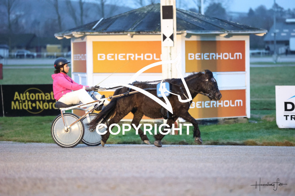 - Beskrivelse: Black Star med Vilja Søndergaard Larsson vinder dagens ponyløb her på Spar Nord Arena-Aalborg Væddeløbsbane d. 14/12-2025. Sponsor: Jørn Damsgaards Ærespræmie Aalborg Ponytravklub - Ikaros Fotograf: Hesselborg Foto