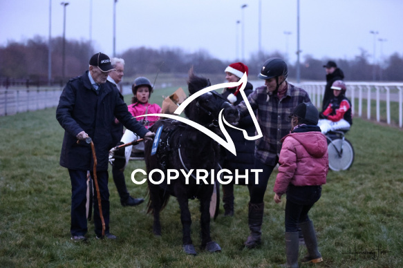 - Beskrivelse: Black Star med Vilja Søndergaard Larsson vinder dagens ponyløb her på Spar Nord Arena-Aalborg Væddeløbsbane d. 14/12-2025. Sponsor: Jørn Damsgaards Ærespræmie Aalborg Ponytravklub - Ikaros Fotograf: Hesselborg Foto