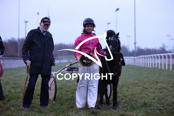- Beskrivelse: Black Star med Vilja Søndergaard Larsson vinder dagens ponyløb her på Spar Nord Arena-Aalborg Væddeløbsbane d. 14/12-2025. Sponsor: Jørn Damsgaards Ærespræmie Aalborg Ponytravklub - Ikaros Fotograf: Hesselborg Foto