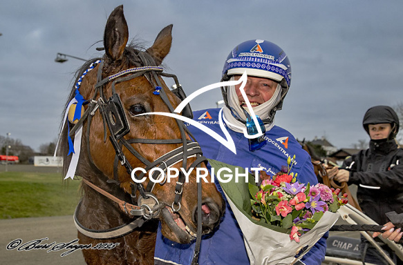 - Billede Beskrivelse: CASSIUS CROWN med Iver Jessen 5. løbs vinder,, på Charlottenlund d. 2025-12-20. Photo: Burt Seeger.