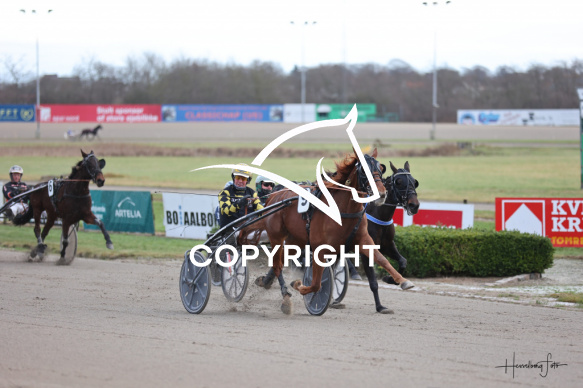 - Nøgleord: 24/12-2025, Amerikanerløb, Birger Jørgensen, Hesselborg Foto, HUXIE SENSEI, Løb 5, Spar Nord Arena-Aalborg Væddeløbsbane