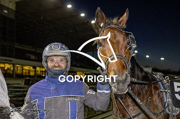 - Billede Beskrivelse: HURRICANE PHOTO med Bjarke Haagensen 6. løbs vinder,, på Charlottenlund d. 2025-12-30. Photo: Burt Seeger.