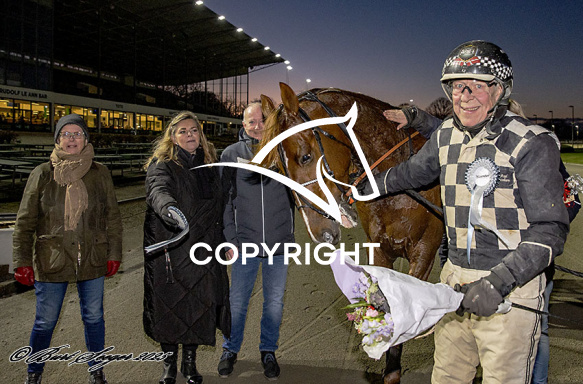 - Billede Beskrivelse: KABOOM med Axel Jacobseb 5. løbs vinder,, på Charlottenlund d. 2025-12-30. Photo: Burt Seeger.