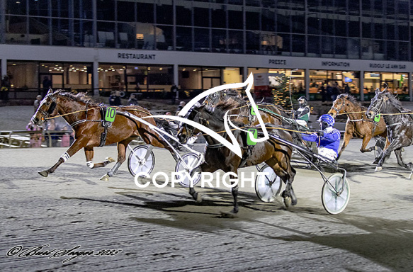 - Billede Beskrivelse: GIBSON med Tobias Jonassen 9. løbs vinder,, på Charlottenlund d. 2025-12-30. Photo: Burt Seeger.