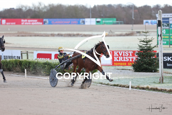 - Beskrivelse: Vinderen af 1 løb blev PASTOR PETE med Birger Jørgensen. Amerikanerløb. Spar Nord Arena-Aalborg Væddeløbsbane. d.24/12-2025. Fotograf: Hesselborg Foto