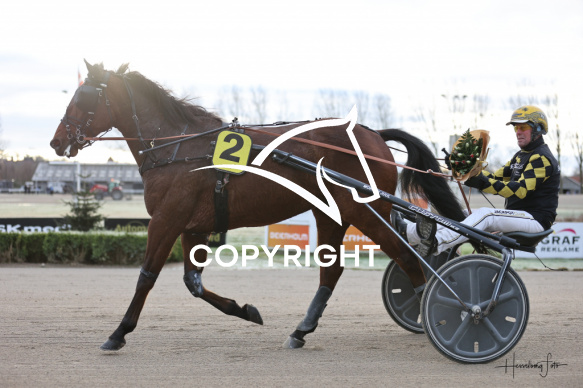 - Beskrivelse: Vinderen af 1 løb blev PASTOR PETE med Birger Jørgensen. Amerikanerløb. Spar Nord Arena-Aalborg Væddeløbsbane. d.24/12-2025. Fotograf: Hesselborg Foto